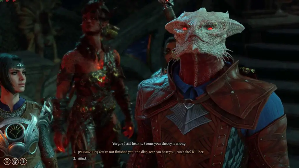 Defeating Yurgir is necessary to obtain an Umbral Gem in the Gauntlet of Shar, but it would be tough to eliminate him. Therefore, it’s advisable to use persuasion to convince Yurgir to eliminate everyone in the room, ultimately himself at the end.