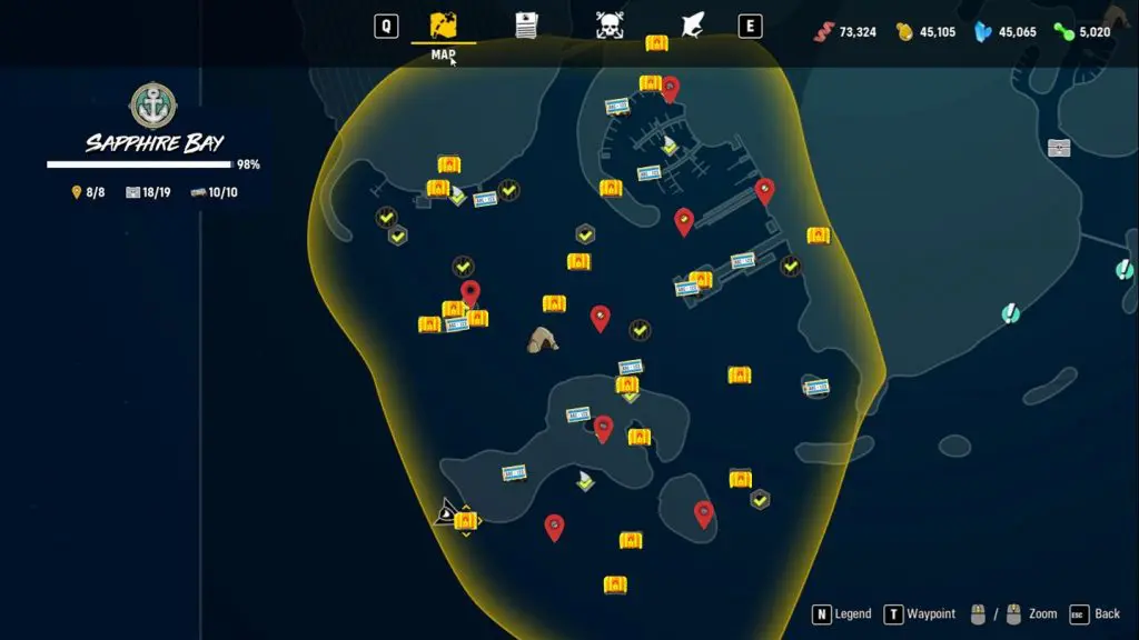 Maneater: Sapphire Bay All Collectible Locations | License Plates, Landmarks & Nutrient caches Post published:May 24, 2020 Post category:Maneater In Sapphire Bay Area there are following collectibles:10 License Plates8 landmarks19 Nutirent CachesCheck the Below Map For Location of all the items Check out the videos below to see how to get these collectibles. Sapphire Bay: All License Plate locations Sapphire Bay: All Landmark locations Sapphire Bay: All Cache locations