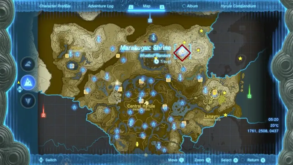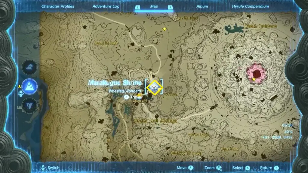 This guide shows how to complete the Marakuguc Shrine in the Legend of Zelda: Tears of the Kingdom, released on 12th May 2023. Marakuguc Shrine is located within the Eldin Canyon region of The Legend of Zelda: Tears of the Kingdom. The location of the Marakuguc Shrine is shown in the picture below.