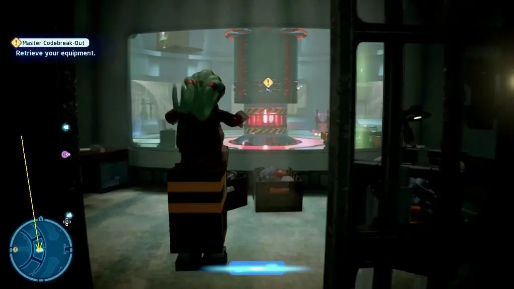 Go to the cell on the southwest side as shown in the minimap below. Use force to lift the lever inside the cell and put it into its slot as shown in the picture below. Then pull the lever to open the cell and go inside. Use the Hero Terminal inside the cell and a jigsaw puzzle with 4 tiles will come down. You need to stand on the buttons in front of the puzzle to complete the picture. Each time you complete the picture, a green light will glow. You need to complete the pictures of 4 characters (Chewbacca, Maz katana, Rose & Han Solo). Once all 4 lights are glowing, the Minikit will appear as shown in the second picture below.