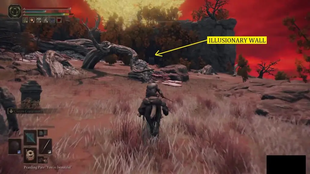 To reach Master Lusat, go east from Caelem to Fort Faroth as shown below. From Fort Faroth, drop down the mountain on the south side. Here you will find an illusionary wall on the mountain behind the cemetery as shown in the pictures below. Hit the illusionary wall to reveal a cave.