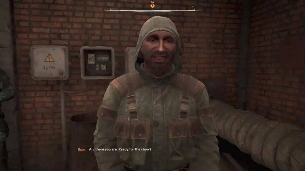 Head down into the bunker and speak with the NPC Scar.