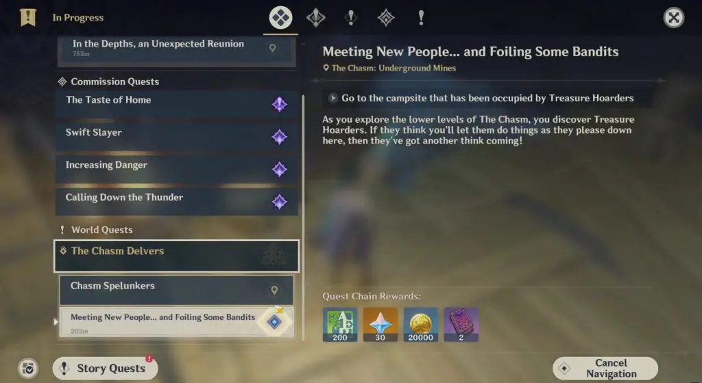 This guide shows the complete walkthrough of the Meeting New People and Foiling Some Bandits world quest in Genshin Impact 2.6, which released on 30th March 2022. You get this quest automatically during the Chasm Spelunkers world quest.
