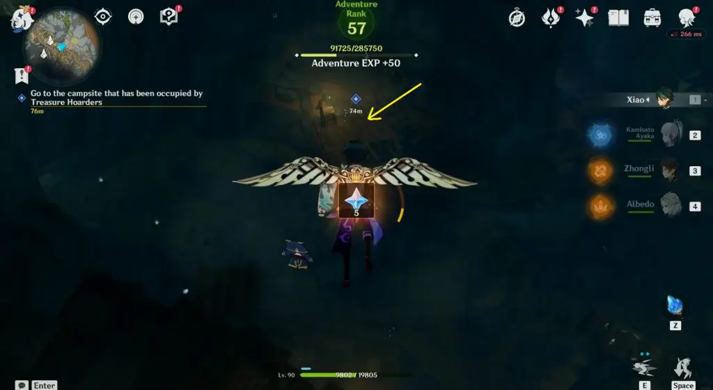 Go to the waypoint marked in the picture below. Then jump down on the east side and glide down to the Treasure Hoarders camp as shown in the pictures below. Clear the Treasure Hoarders in the miner’s camp and then open the cage there to free the prisoner.