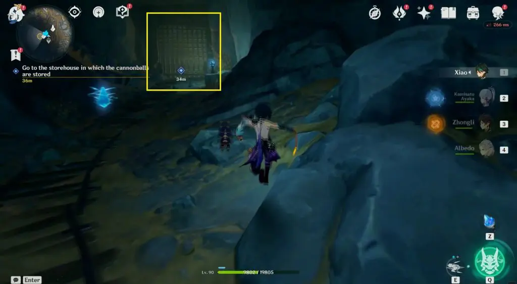 Now jump down and continue in the south direction to reach the second camp as marked in the picture below. Clear the Treasure Hoarders in the camp and then examine the giant cannon there.