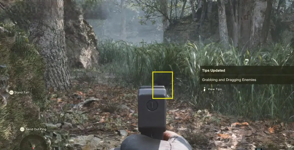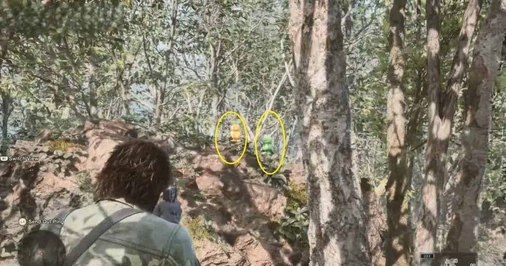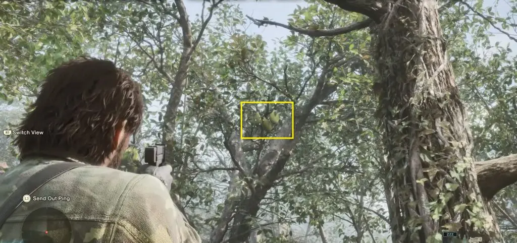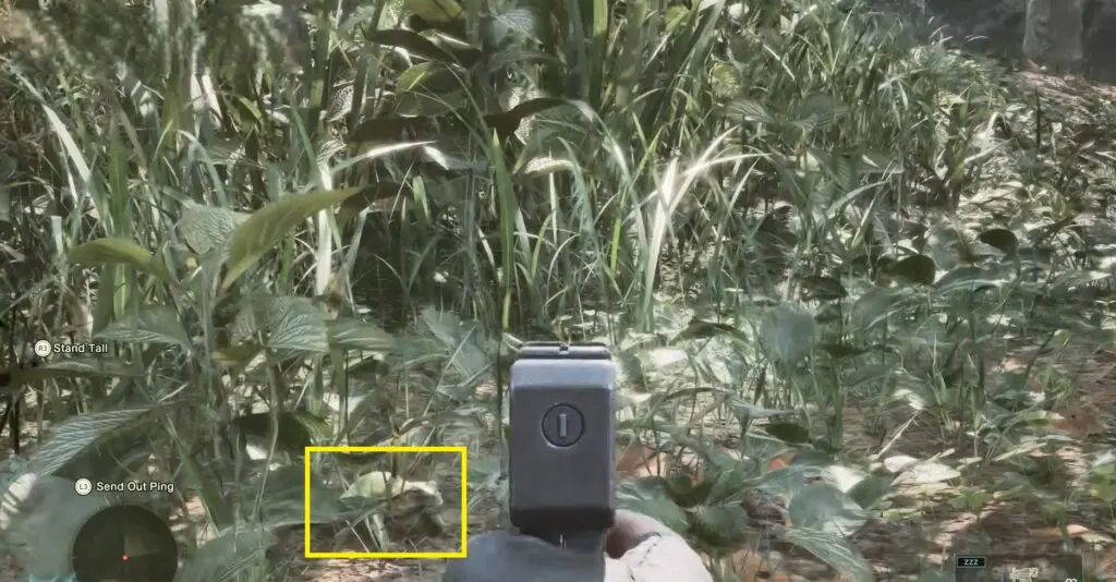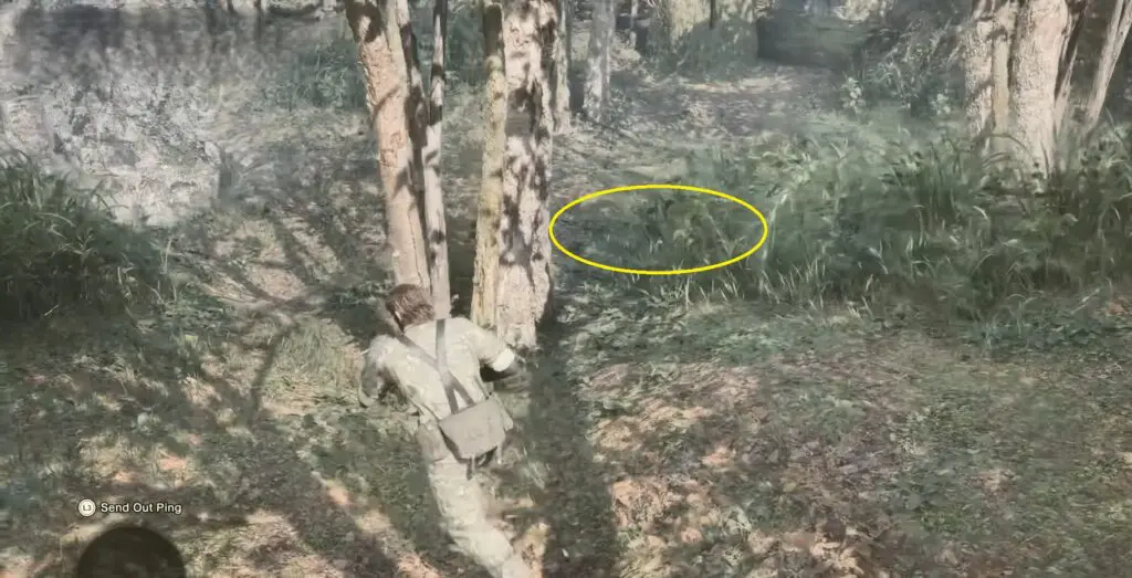 Just below where you found the fruits, you’ll find a patch of grass. Look for the black birds in that grass. They can be hard to spot, so you can either crawl through the grass to see them or throw a grenade into the area. (revisit the area later)
