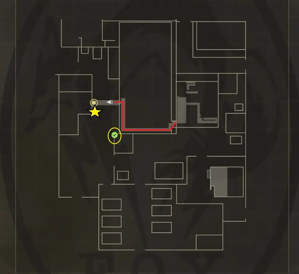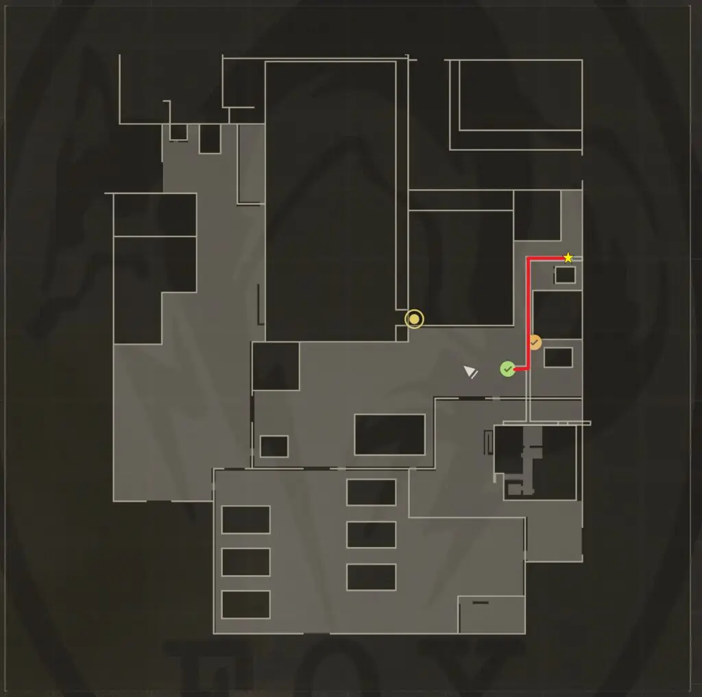 Go through the southwest door of the locker room and follow the corridor. Then, go through the door on your left to reach the Groznyj Grad Weapons Lab: West Wing Corridor. Follow the path as per the map below.