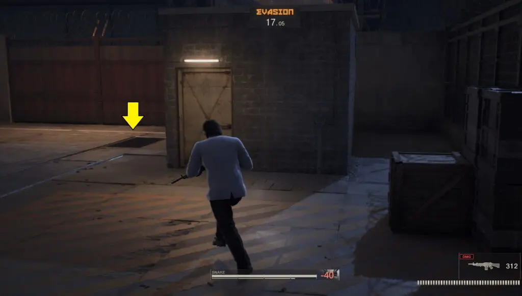 Go behind the fenced area and the tower to find a small building. To its left, you’ll see an opening in the ground to enter the drain. Refer to the map.