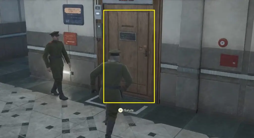 This is also located outside the glass window. Go near the two guards and look outside the glass window on the left side to find it.