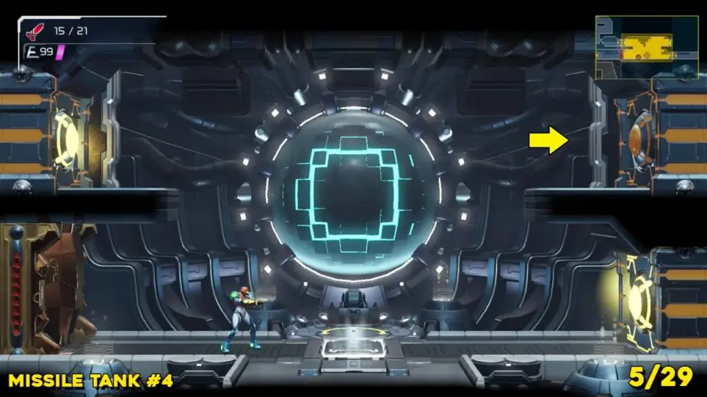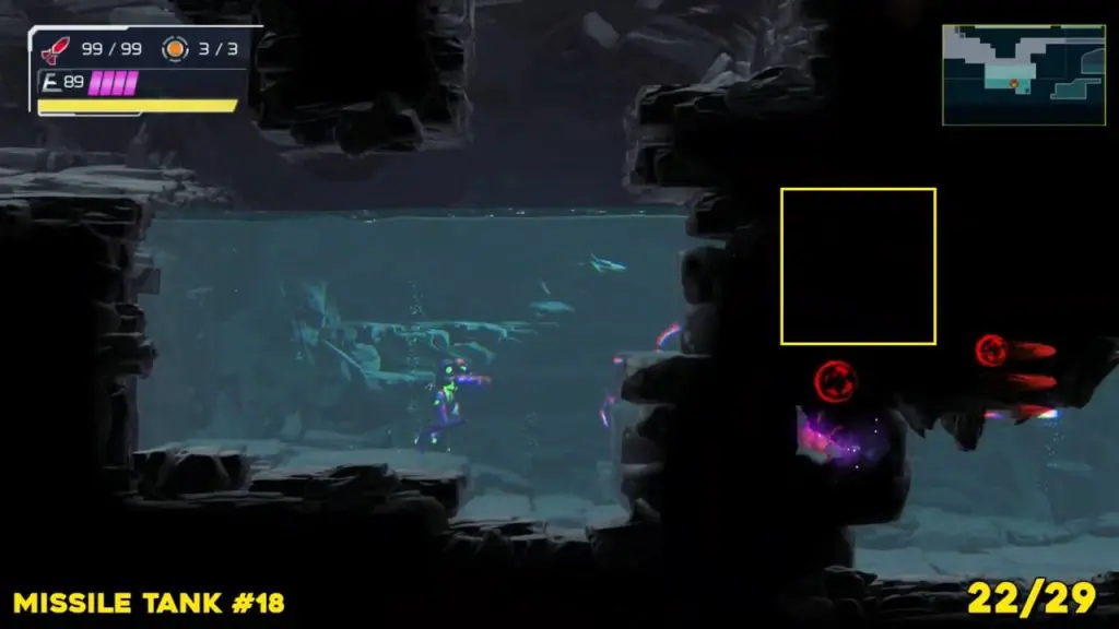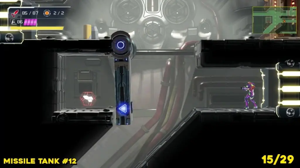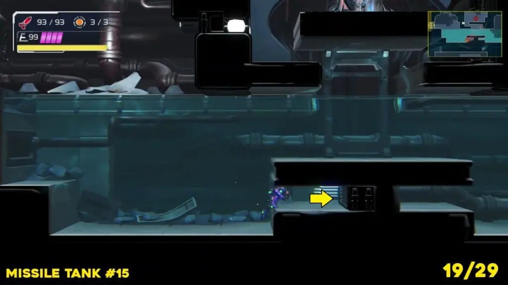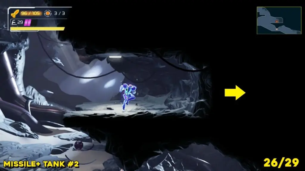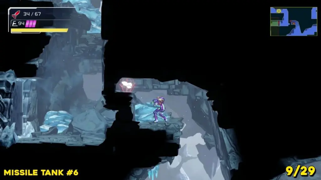 Head to the location we’ve marked on the map here(top green E.M.M.I zone), scan the area, and break the blocks in order to jump down and take it.