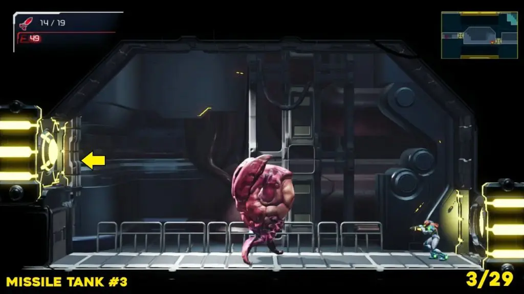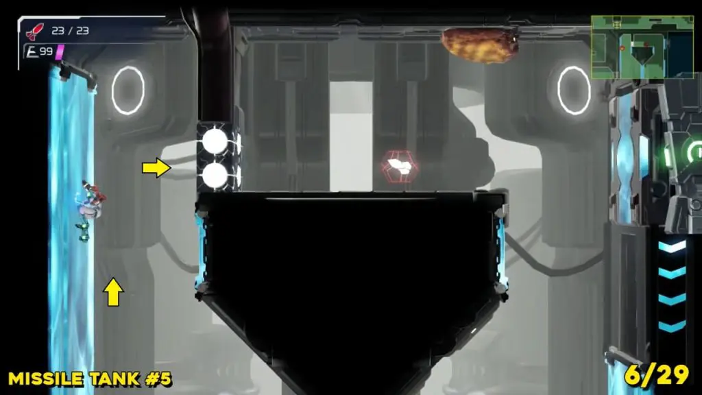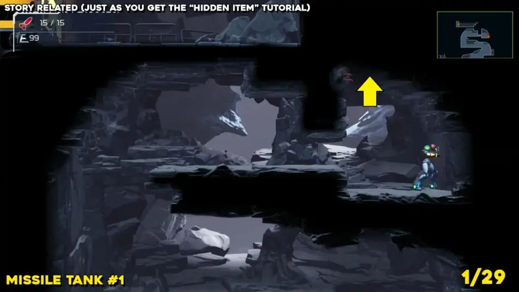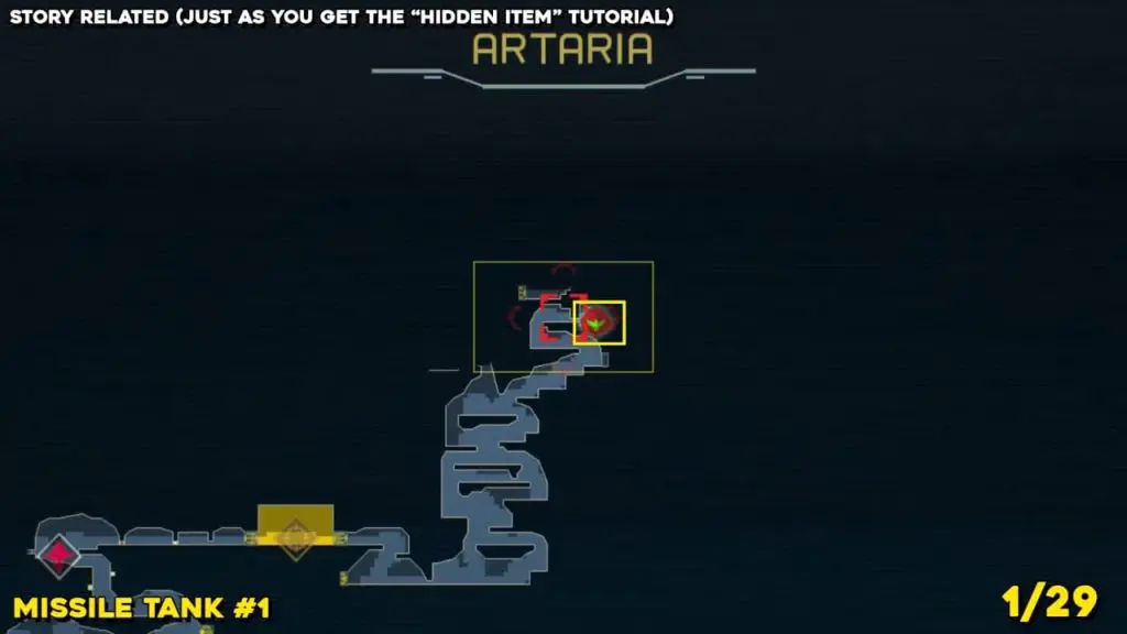 This missile tank is part of the guide at the beginning of the game in Artaria. Head to the location indicated in the pics below, where you’ll find a missile tank behind a breakable wall.