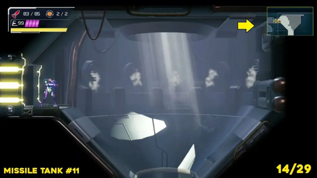 This missile tank is hidden behind a wall. Just blast the wall to collect it. The exact location in the map below.