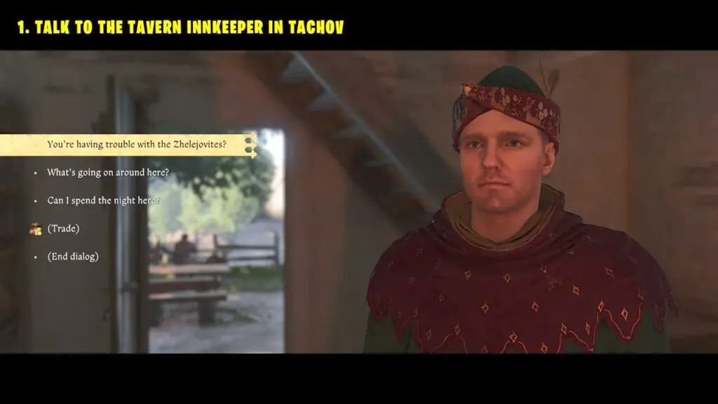To start the quest, go to Tachov and talk to Innkeeper Prochek. He will ask for your help in playing a trick on one of the landlords of Zhelejov, who owns a beautiful bull.
