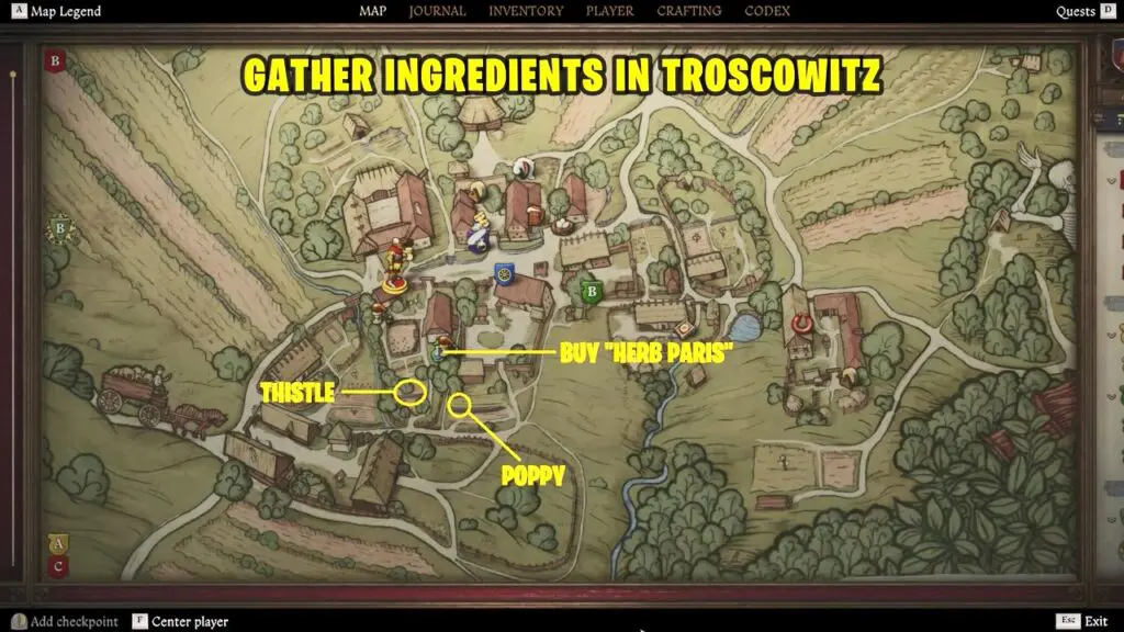 - 1x Thistle – This can be found in the apothecary’s garden in Troskowitz.