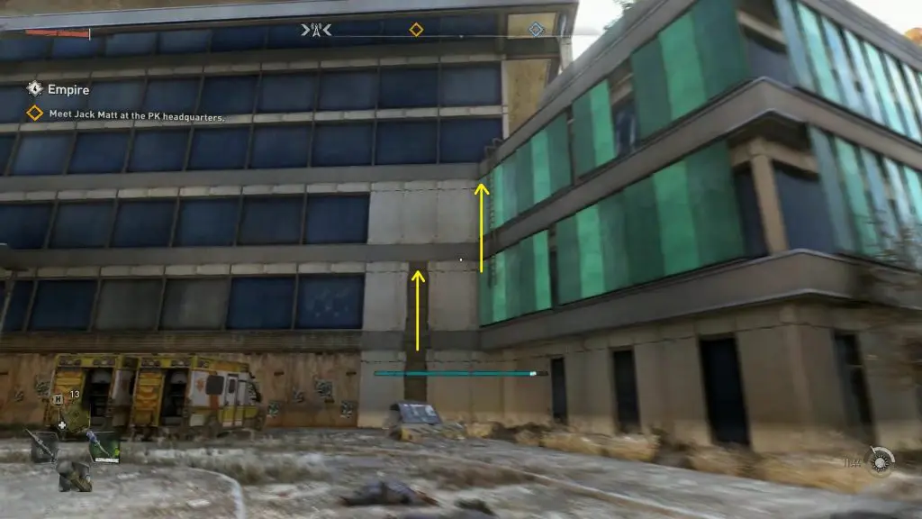 After that, turn around and jump to the floor ahead and then climb the wall on the right side as shown in the picture below.