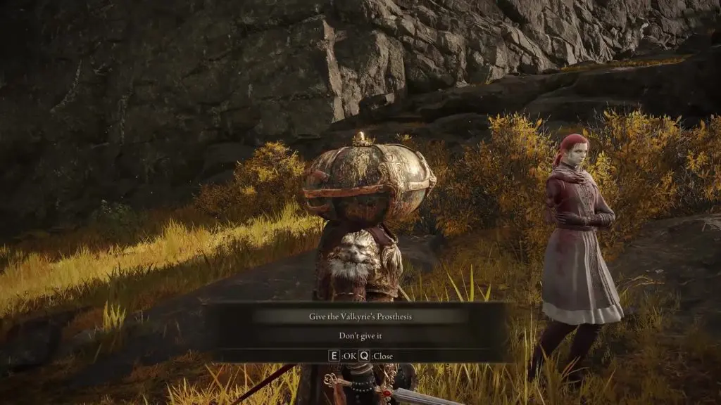 Go back to Millicent at Erdtree Gazing Hill and give her the Valkyrie’s Prosthesis.