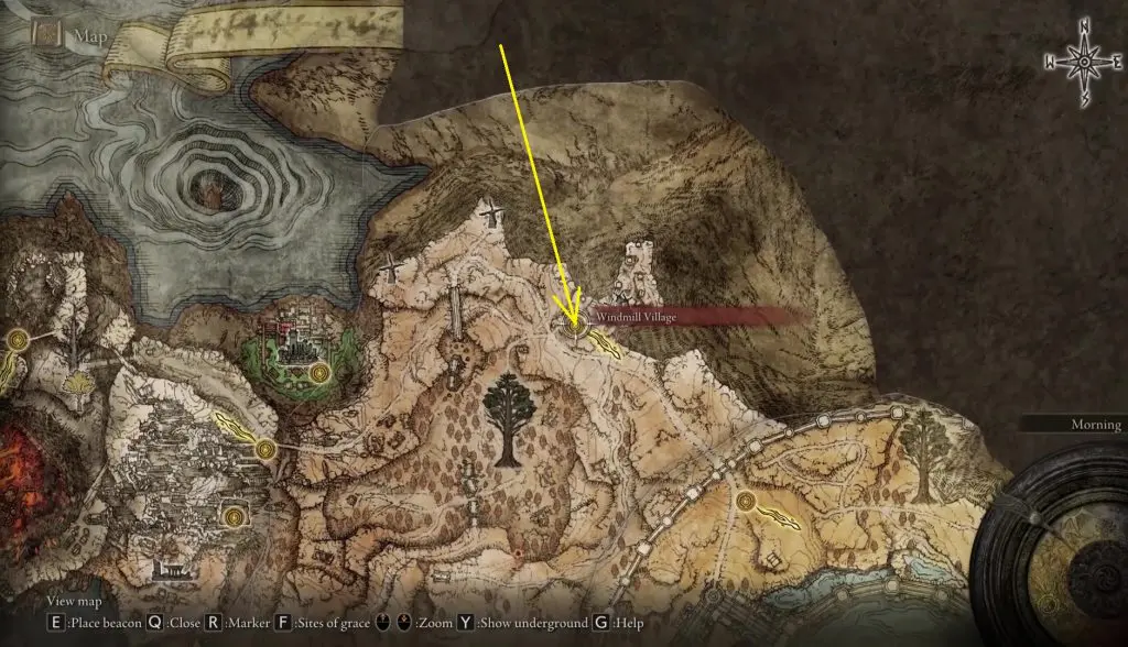 Go to the Windmill Village, which is east of The Shaded Castle as shown below. Defeat the Godskin Apostle boss there.