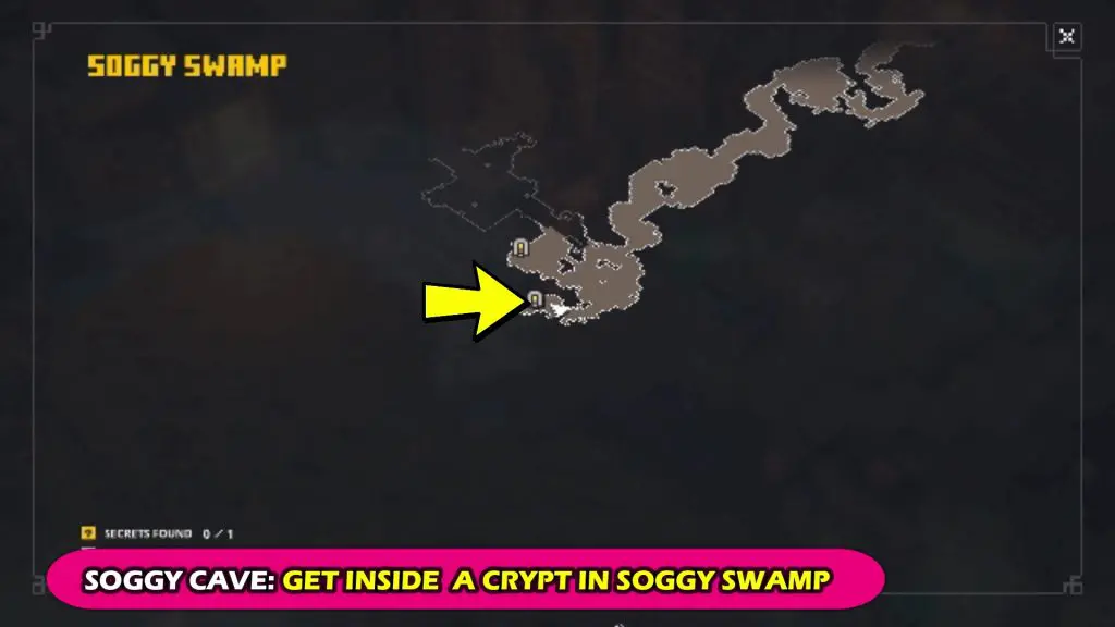 You’ll get it inside a crypt in Soggy Swamp. Enter the crypt and make your way to a small pedestal. As you approach it, the gave will shut close and you’ll have to fight some enemies. After the fight is ovet the gate will open. Interact with the pedestal it will create a path to reach the map. Interact with the map to unlock Soggy Cave Secret Mission.