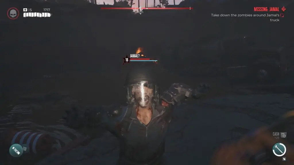 The area you are about to enter is having a lot of zombies. Eliminate all the zombies in the area, including Jamal who is among them. Don’t forget to collect the key that he drops.