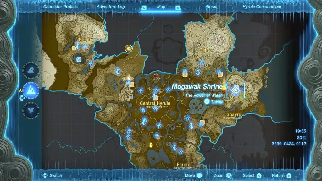 This guide shows how to complete The Power of Water Puzzle in the Mogawak Shrine in the Legend of Zelda: Tears of the Kingdom game, released on 12th May 2023. The Mogawak Shrine is at the location shown in the pictures below.