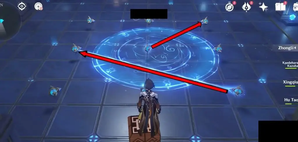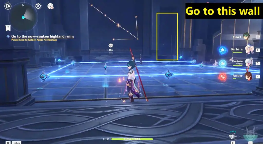 On solving the three puzzles, an exquisite chest will spawn and stars on the wall will form an arrow as shown in the picture below. Go to the wall the arrow is pointing at and touch it to reveal the next area.