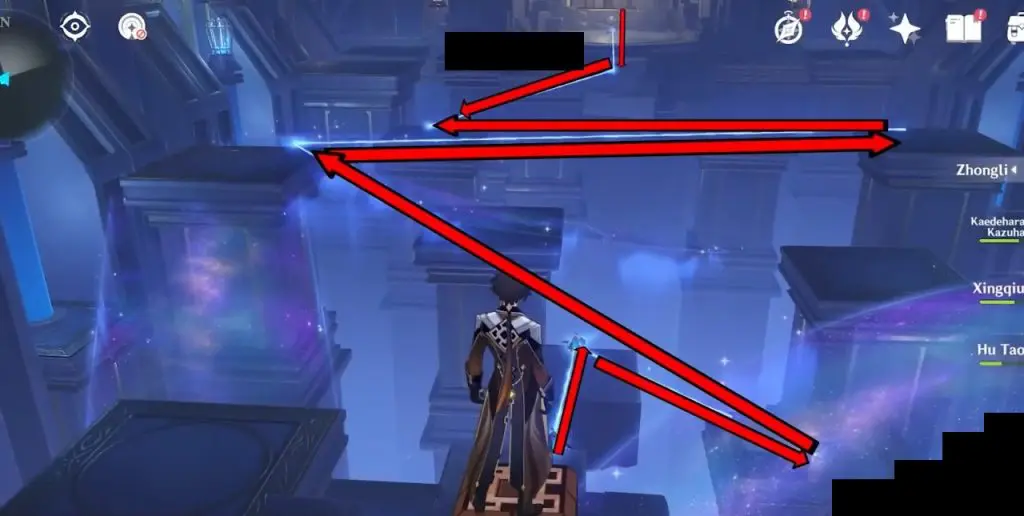 Continue ahead and you will encounter another Astral Puzzle. The solution to the Puzzle is shown in the picture below. On solving the puzzle, an Exquisite Chest will spawn.