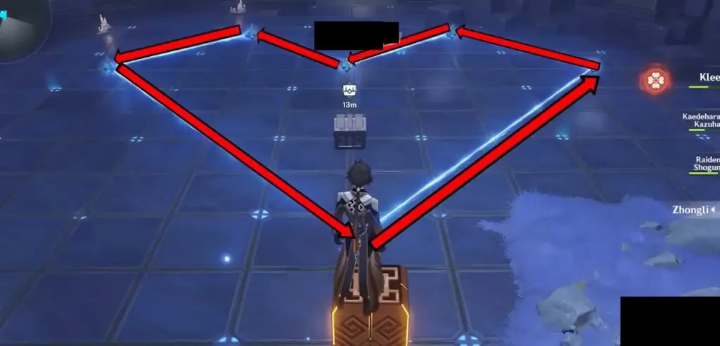 Continue ahead and you will encounter an Astral Puzzle. The solution to the Puzzle is shown in the picture below. On solving the puzzle, an Exquisite Chest will spawn.