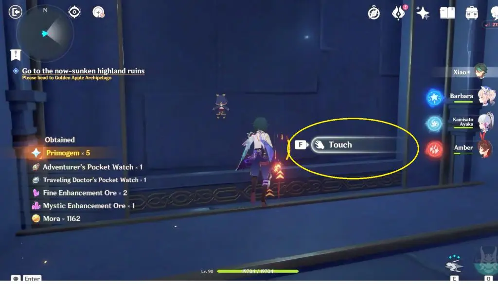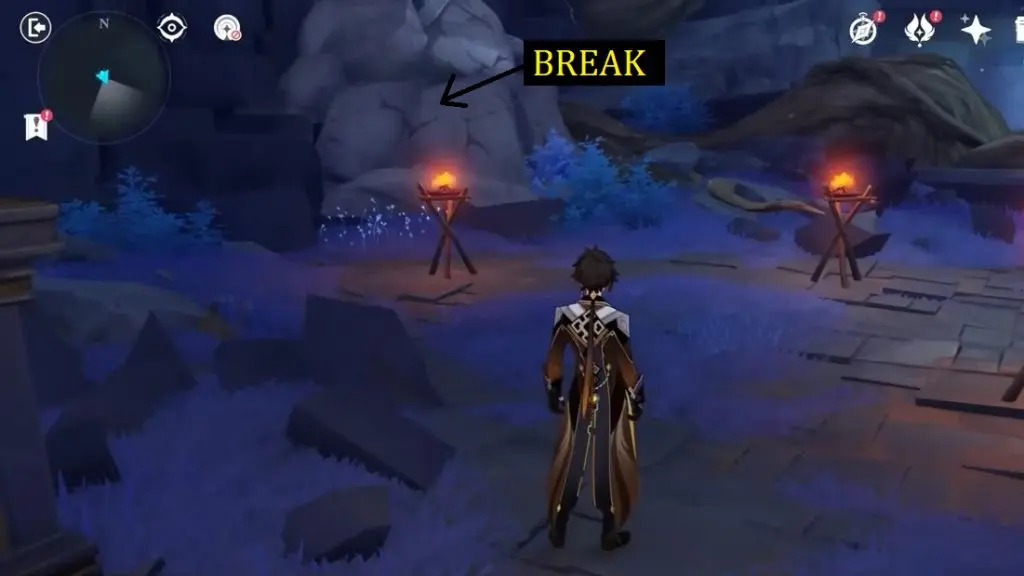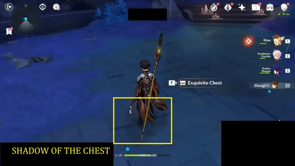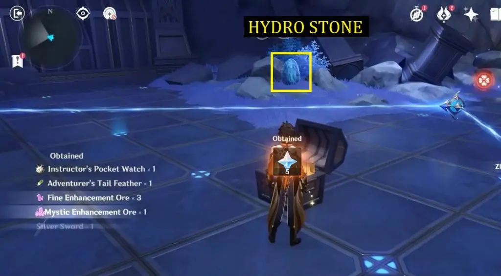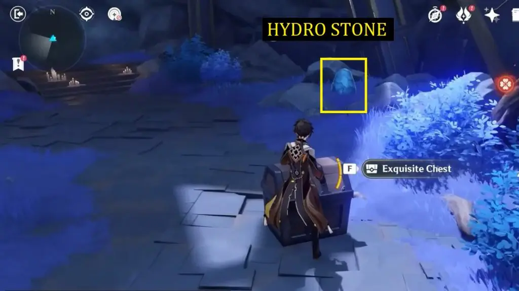 In the next area, you will see a fake Exquisite Chest that won’t open. Hit the Hydro Stone near it to make it rain inside the cave. In the rainwater, you will be able to see the reflection of the original exquisite chest as shown in the second picture below.