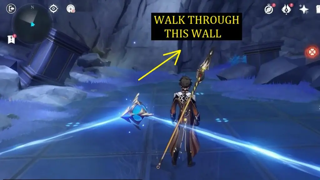 After opening the previous chest, hit the Hydro Stone nearby and then walk through the wall as shown in the pictures below.
