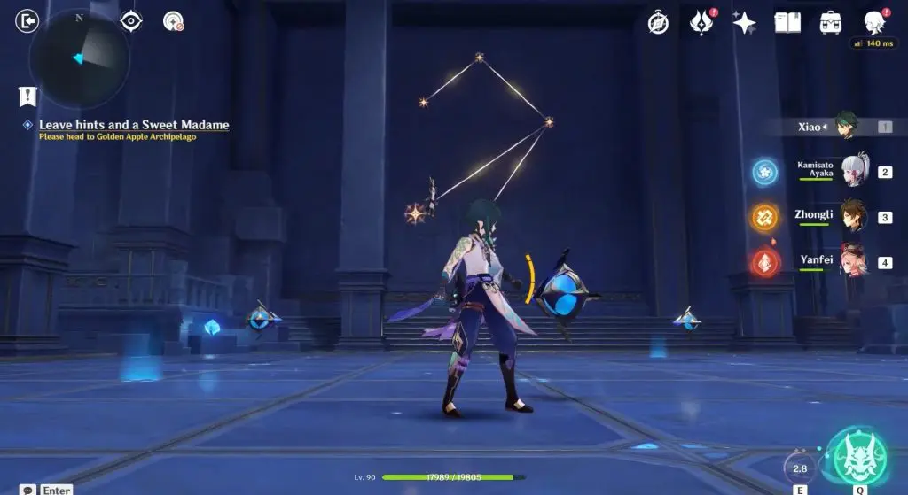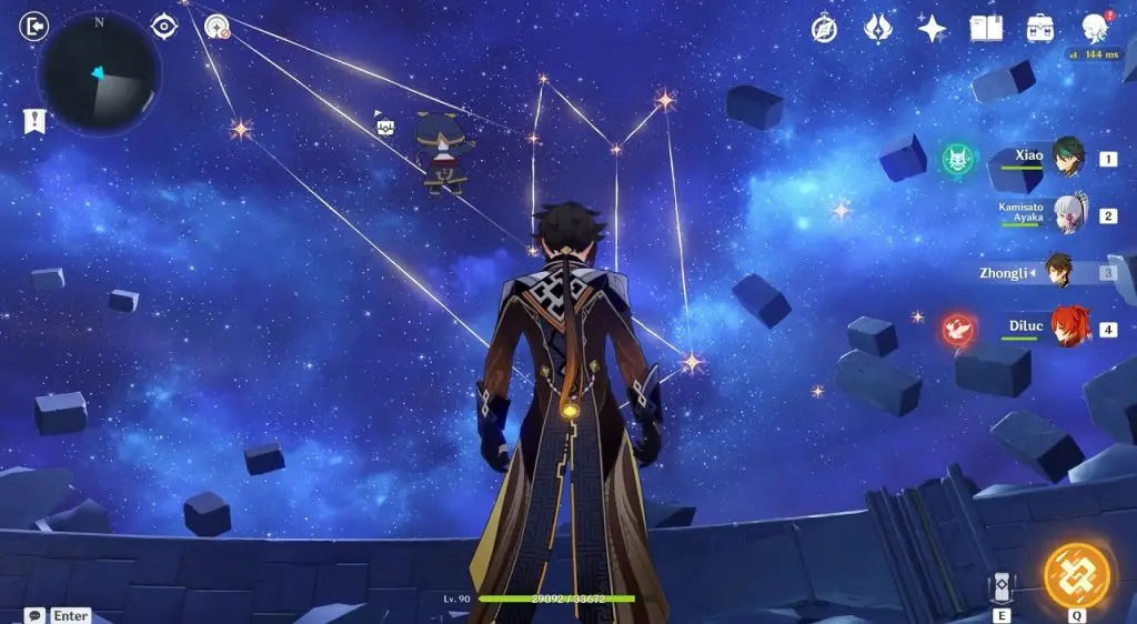 To solve the puzzle, you need to link the Star Guides in a specific pattern. The pattern that you need to form can be seen by looking up in the sky. The picture below shows the pattern for the first Astral Puzzle that you will encounter in the game. I have numbered the stars in the picture below to help you better understand the solution for this specific puzzle. On solving the puzzle, an Exquisite Chest will spawn.
