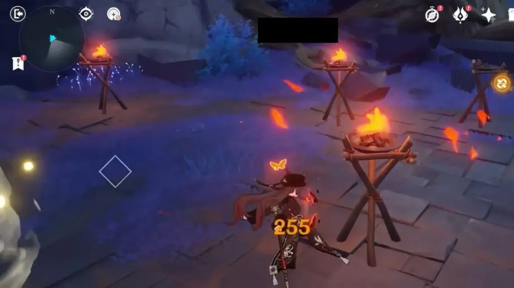 After opening the previous chest, continue south and walk through the wall to reach the next chamber. Here you will see a few torches. Put out the fire on torches. Then light up the three torches as shown in the picture below. This will make a common chest spawn.