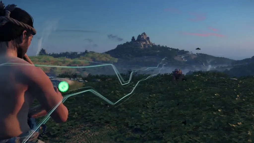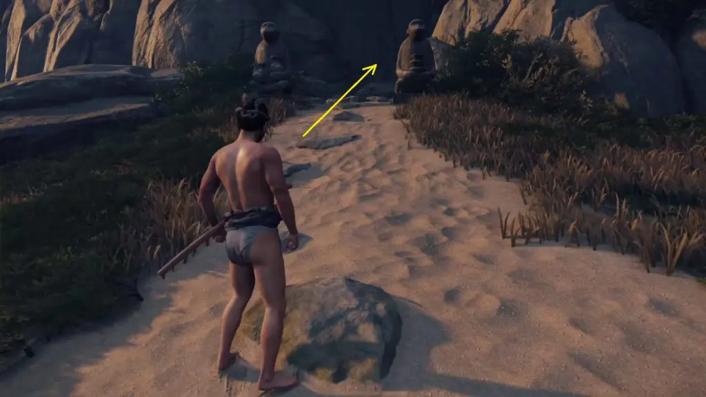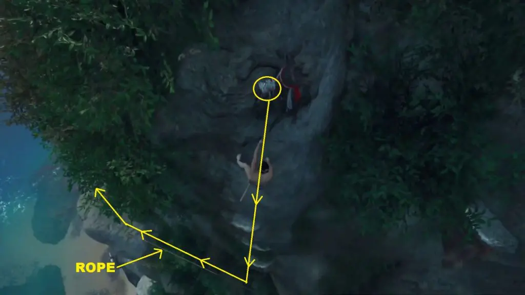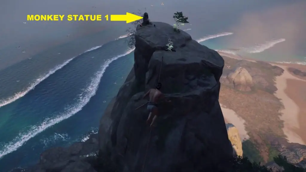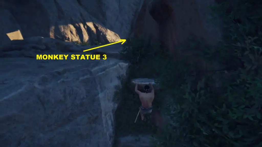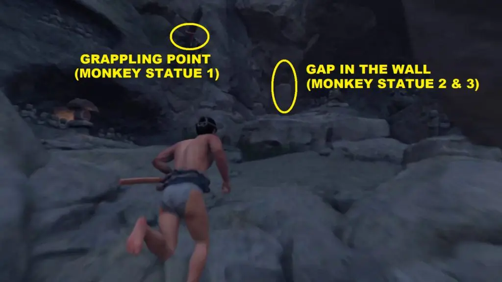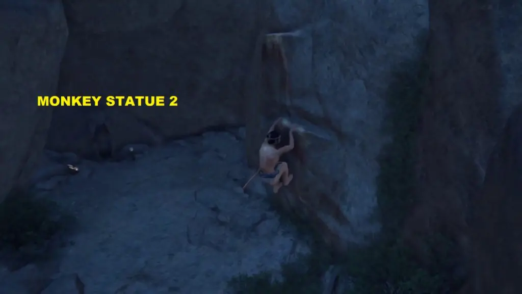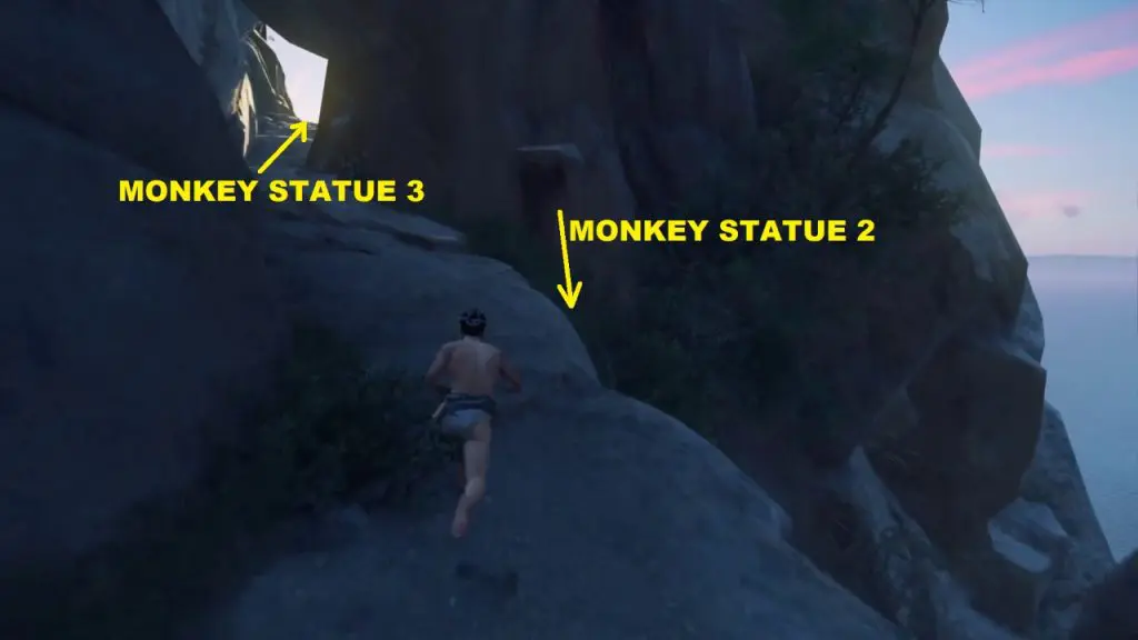 After climbing the rock you will have two paths ahead of you. The grappling point will lead you to Monkey statue 1, up the mountain. The other path is through a gap on the mountain wall. This path will lead you to the other two monkey statues. First, take the grappling hook path and climb up the mountain.