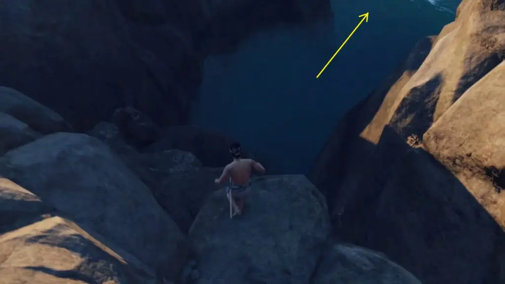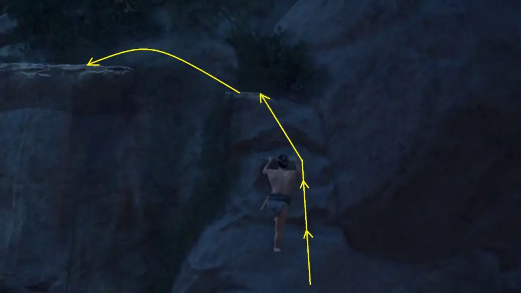 Climb the rocks and jump on the ledge on the left as shown below.