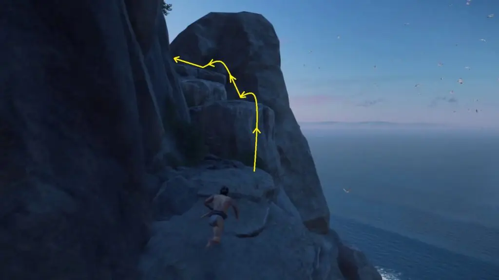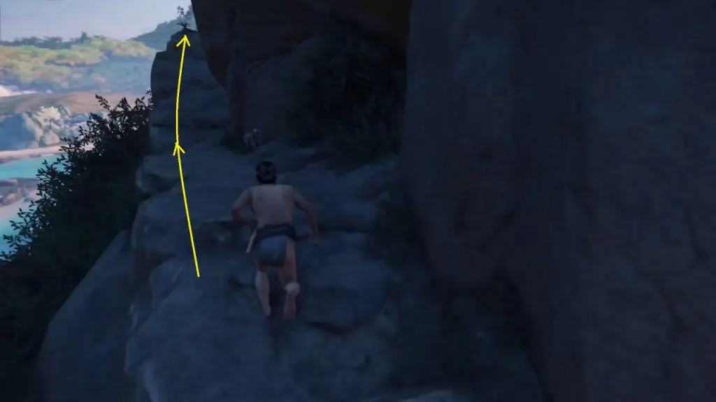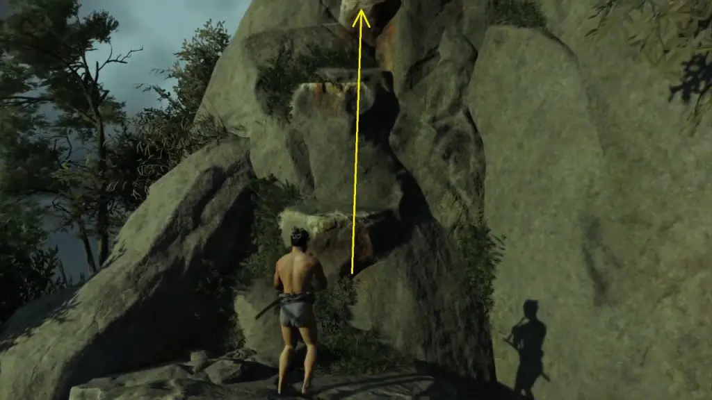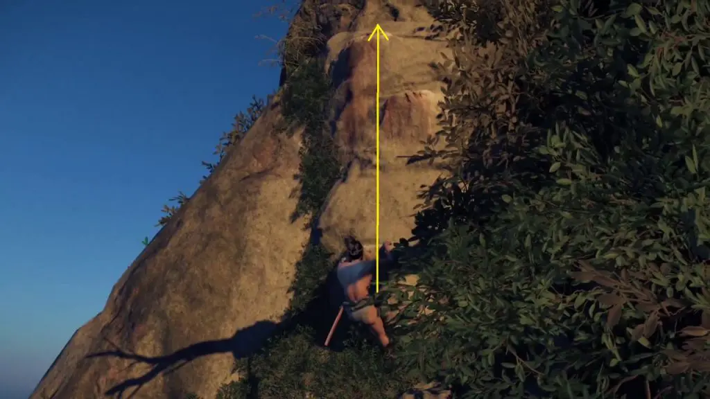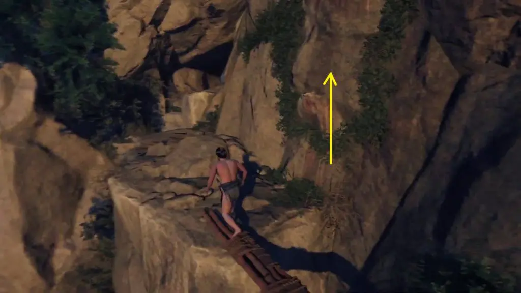 Move ahead in a linear path till you reach the location as shown in the picture below. At the end up of the path climb up the mountain.