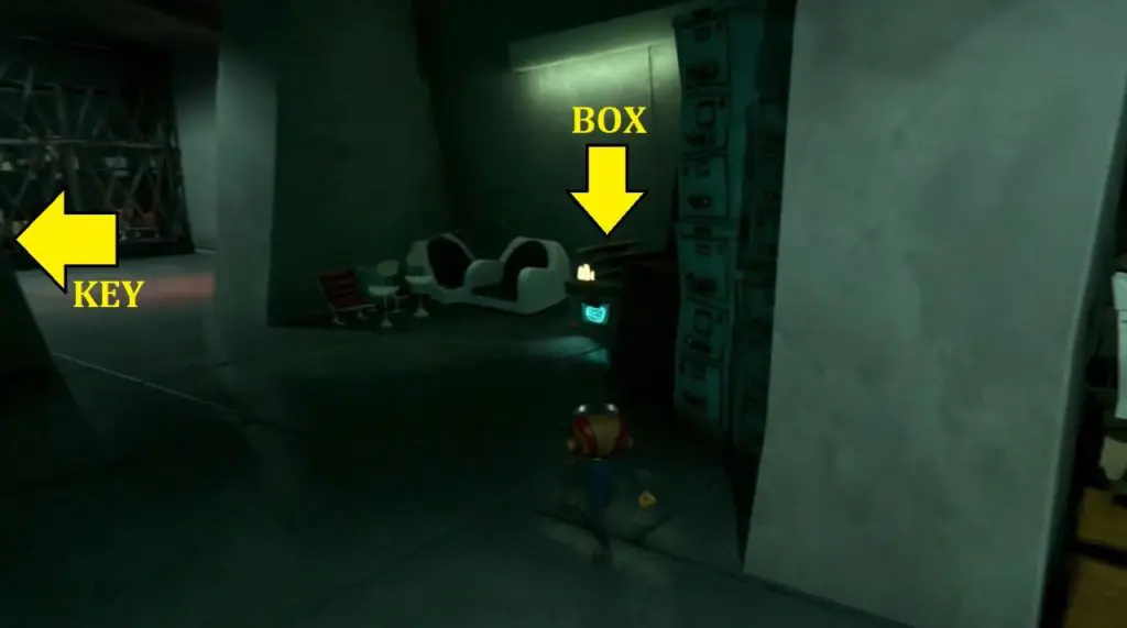 From the previous location of Supply Chest #1, head to the adjacent room. You will find the key on top of a vent, opposite from the exit.