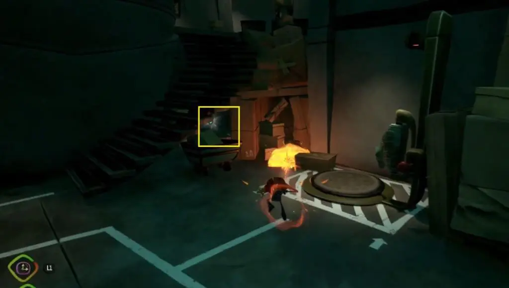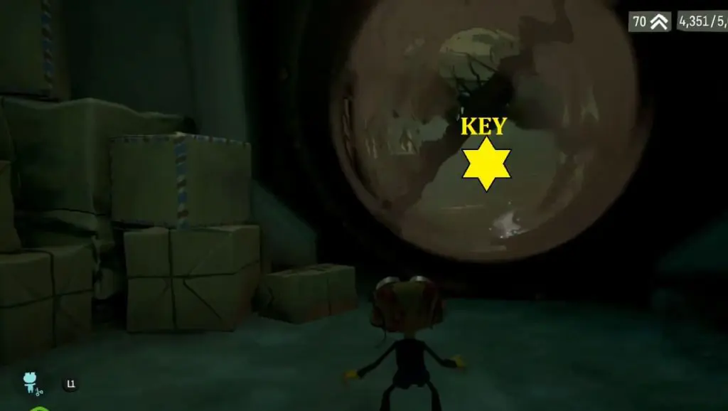 The supply chest key is located in the Motherlobe’s mailroom section. Inside, follow the linear path to find a massive fast-moving fan. Use Time Bubble on the fast-moving fan to slow it down. The supply chest key is behind the giant fan.