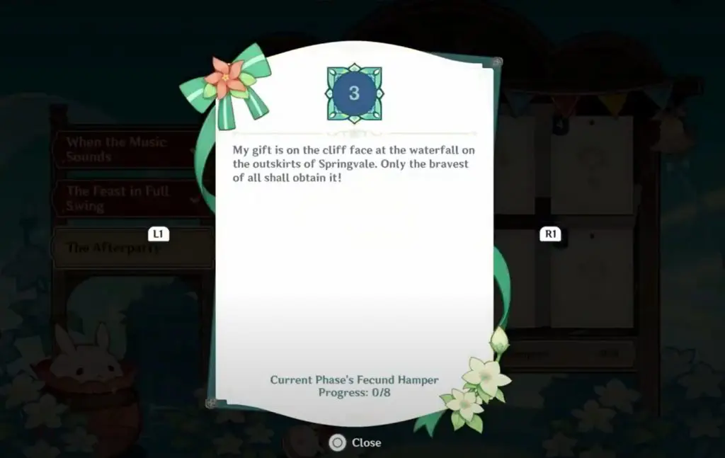 This guide shows the location of a gift with the hint “My gift is on the cliff face at the waterfall on the outskirts of Springvale” in The Afterparty in the event Of Ballads and Brews Event of the game Genshin Impact 3.1. Genshin Impact’s Of Ballads and Brews event, celebrates the Weinlesefest, one of Monstadt’s most important holidays. The event runs from September 29, 2022, to October 17, 2022, while you can exchange Festive Fever rewards until October 24, 2022.