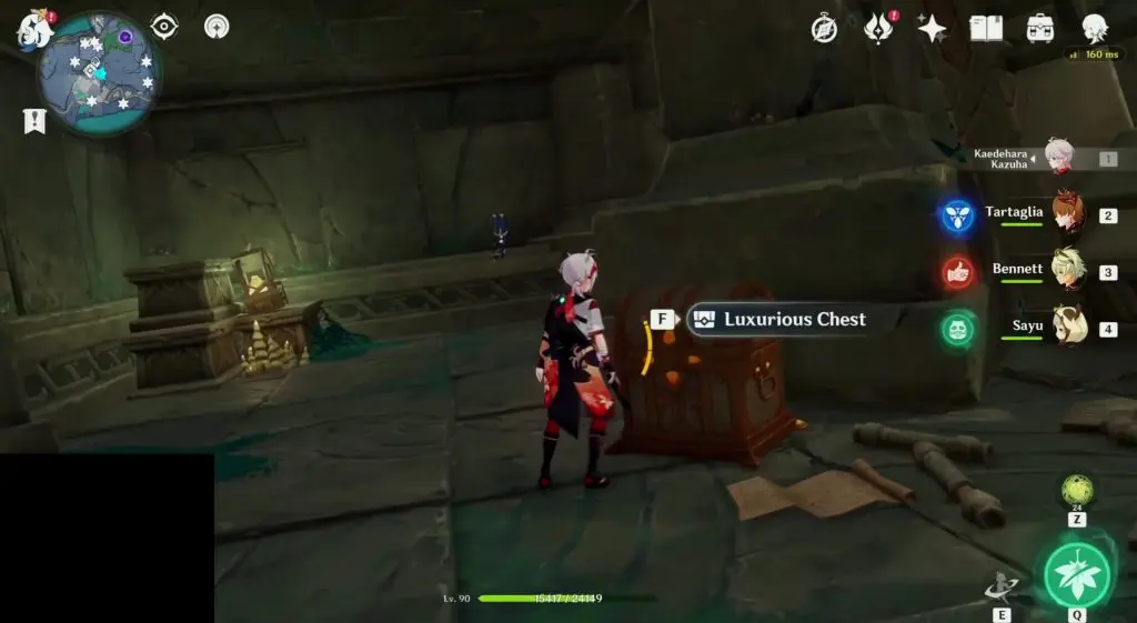 After you have defeated the ruin guards, a luxurious chest will spawn at the center as shown below.