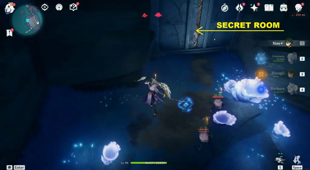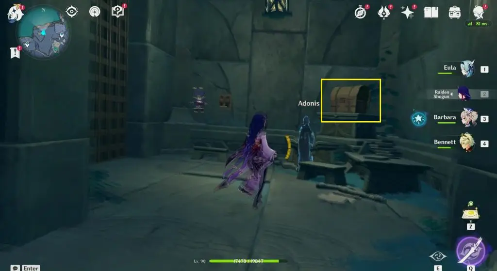 Now take two flights of stairs to reach an area with a ghost named Adonis and a chest behind him. Open the chest to get the Secret Room Key.