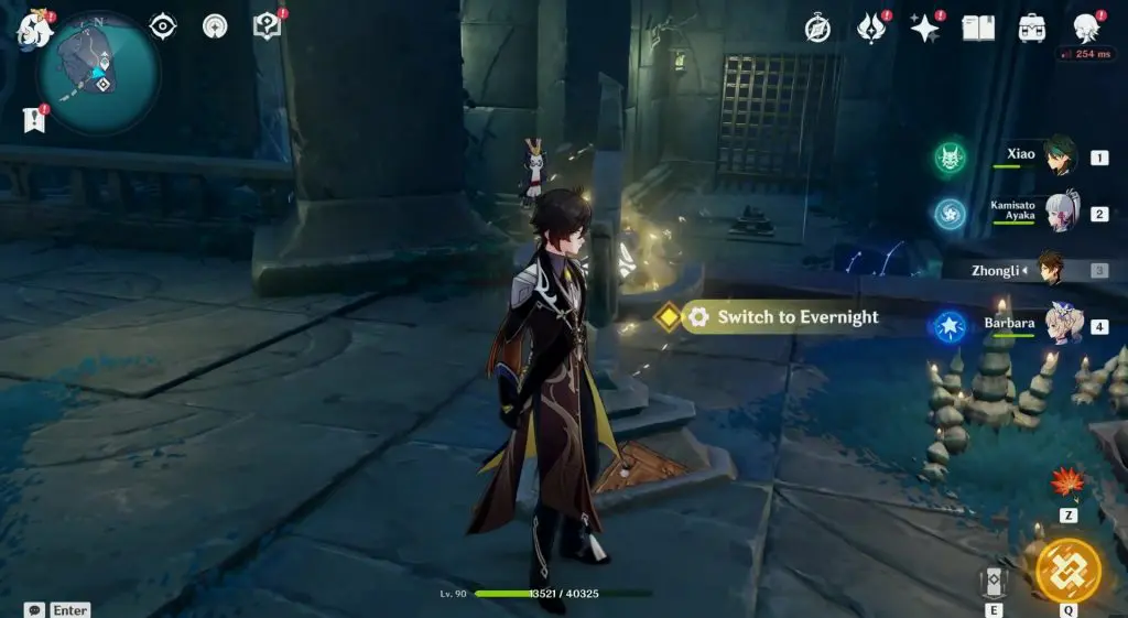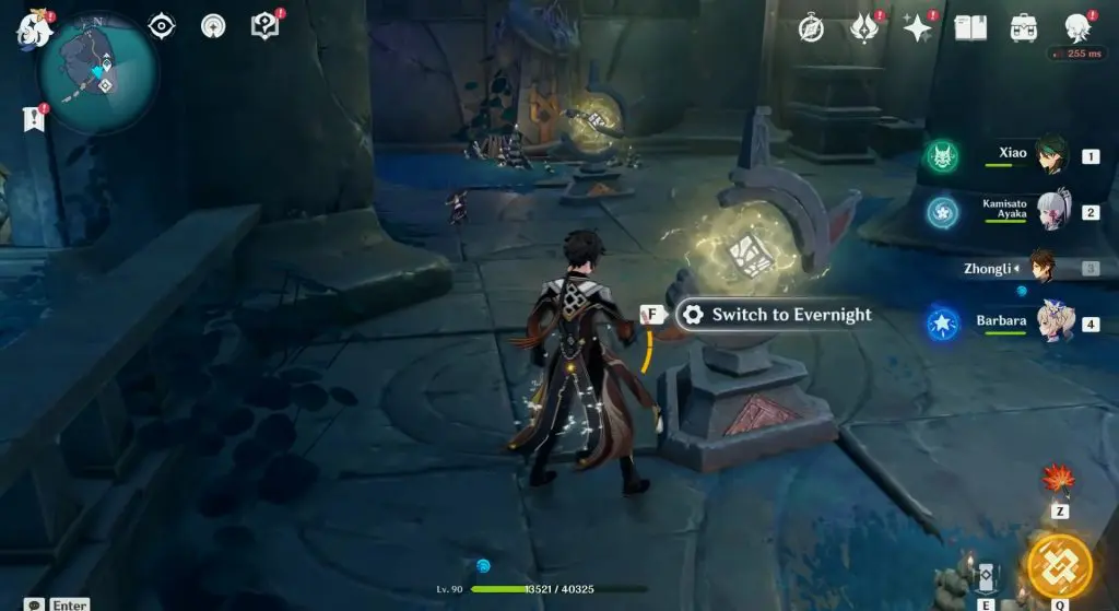 Step 6: Go through the gate that you opened before by activating the switch and take the Evernight energy from the statue as shown in the picture below.