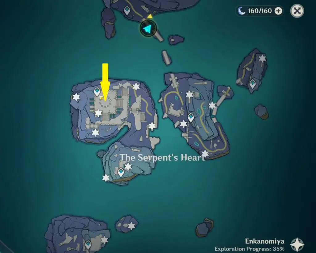 Now that you know the correct order, go to the Serpent’s Heart at the location marked in the picture below.