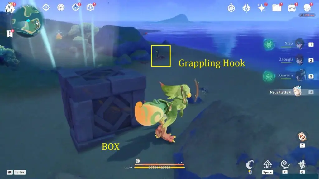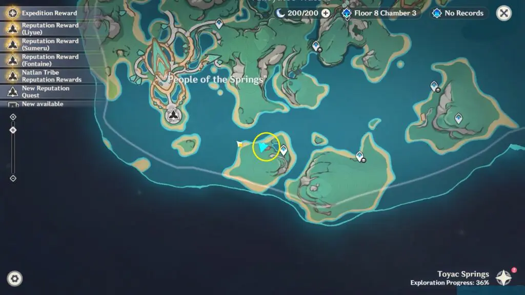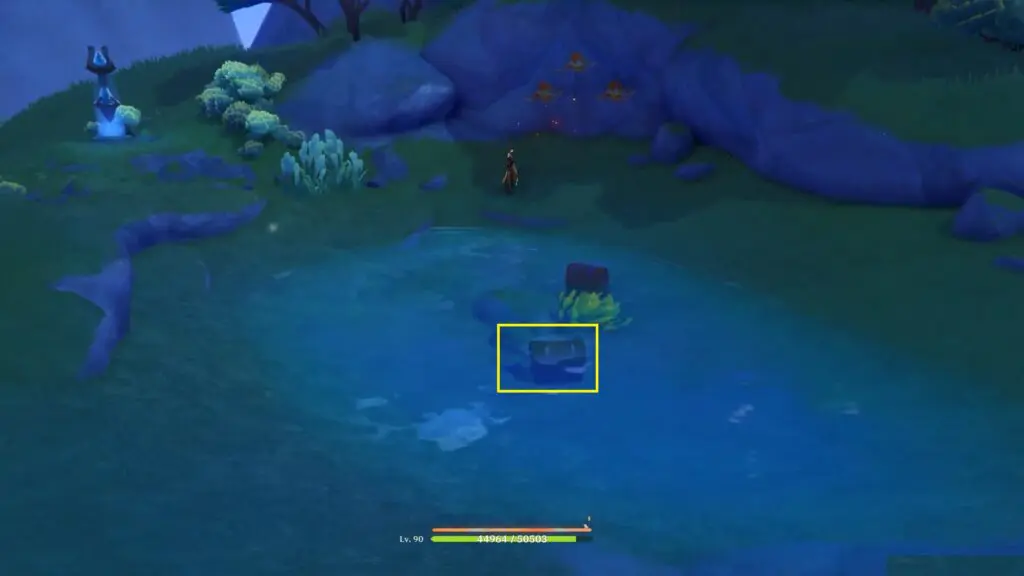 In the southern part of ‘People of the Springs,’ as shown in the image below, a player can spot a Luxurious chest submerged in the water. You can swim to the Luxurious chest, but the player can’t able to open it. To open the chest, the player needs to lower the water level. For this players need to find three Monetoo on the island and guide them to their location on the wall near the chest.