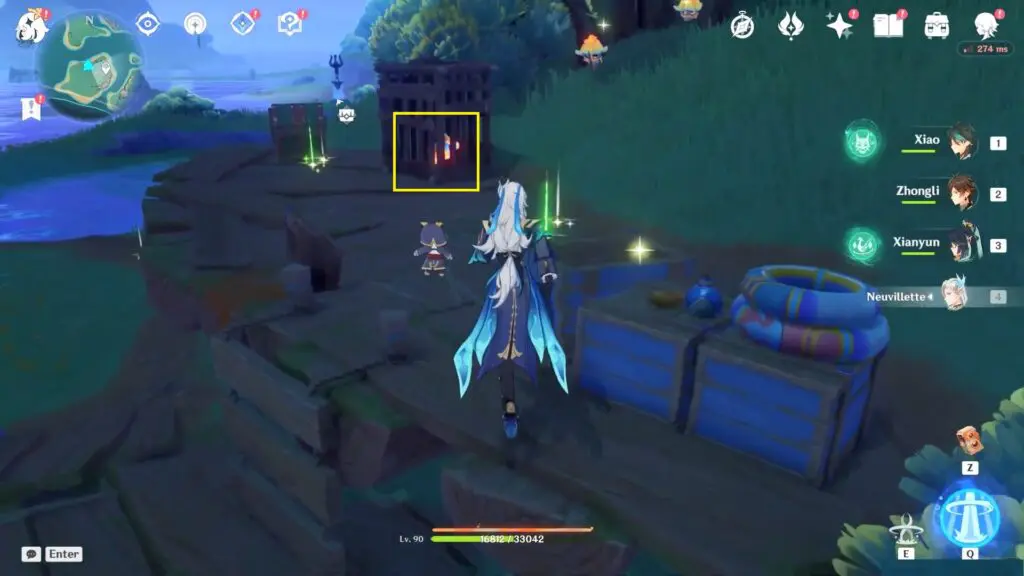 When all three Monetoo are back at their designated location, the water level will drop, and you can open the Luxurious Chest.