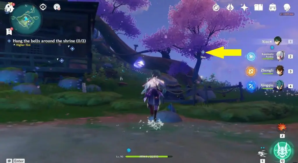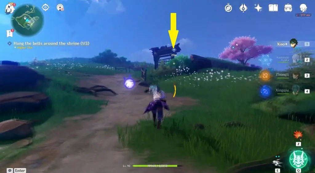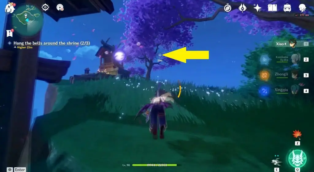 Go and talk to Neko the next day (Real Life) to start ‘Neko is a Cat: Ding-a-Ling Metal Ball’ World Quest. Hang three bells around the shrine as shown in the picture below to complete the quest.