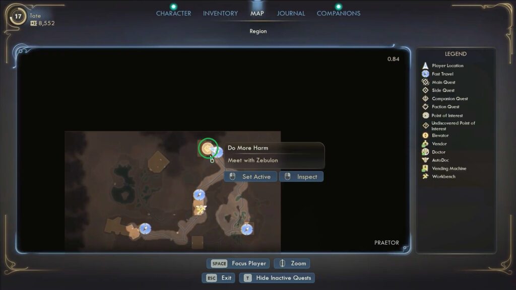 When you set a course for Praetor, head down to the Incognito’s loading bay. There, Niles will approach you and explain that Zebulon (Zeb) has contacted him again, asking to meet at the Tomb of the Matriarch on Praetor. Agree to help him start the quest.