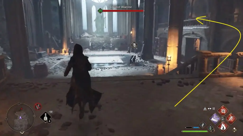 Head inside once the door is unlocked and defeat all the enemies. Go to the right side balcony as shown in the image.