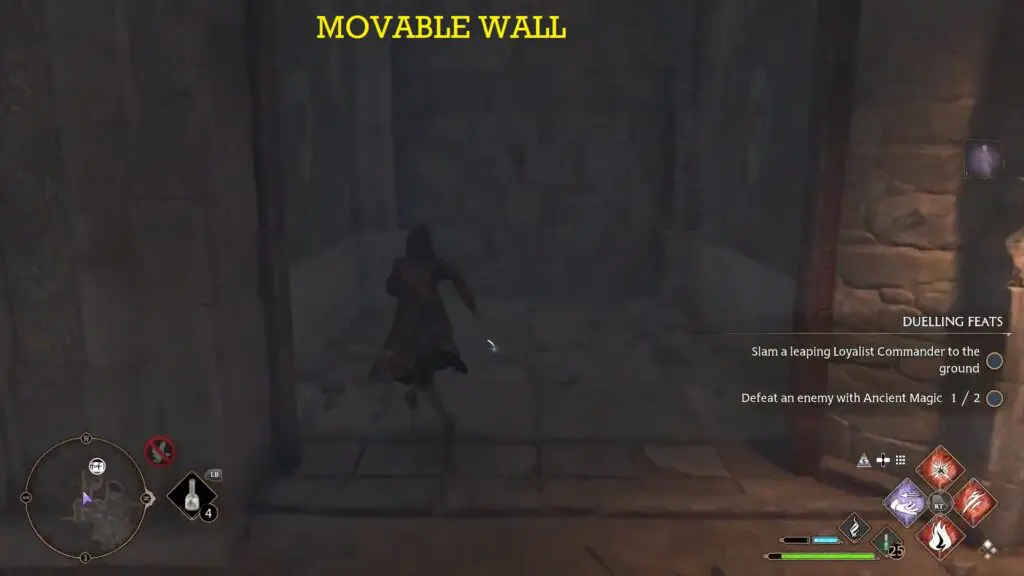 Continue to go deeper inside this cave until you reach the open room with a hole in the middle. Don’t jump into the hole. Look to the right and blast the stone door by using Accio spell on it.
