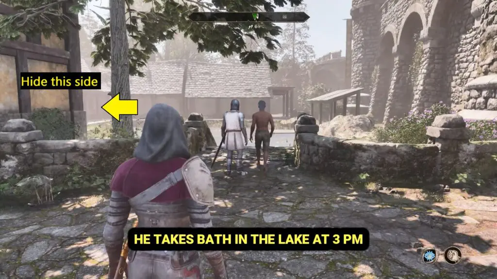Every day around 3 PM, Adamus Phillida goes to the lake or pond to take a bath in Leyawiin Castle. This is the perfect time to strike, because he removes his armor, making him much easier to defeat. But be careful—his bodyguard is still nearby, so don’t let him see you.