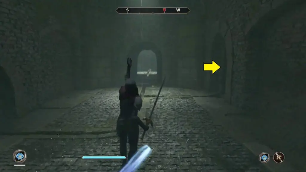 Once you’re in the sewer, follow the quest marker to the jail cells. When the path splits, go right and keep going until you see a door. Go through it to the next area.