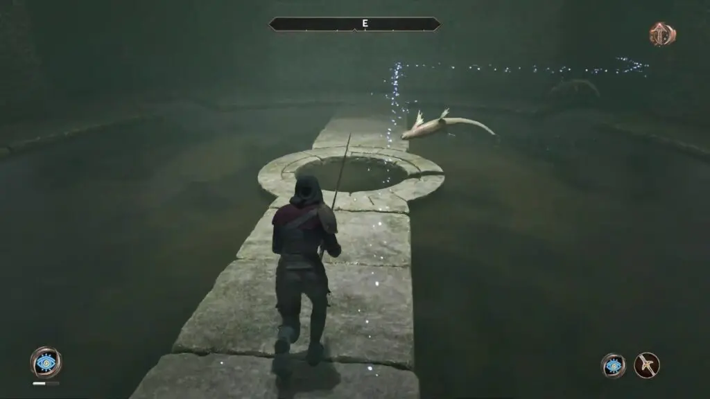 Follow the path, you’ll find a big round room with a fish jumping around in the center. Go down the stairs and follow the tunnel toward the cell.